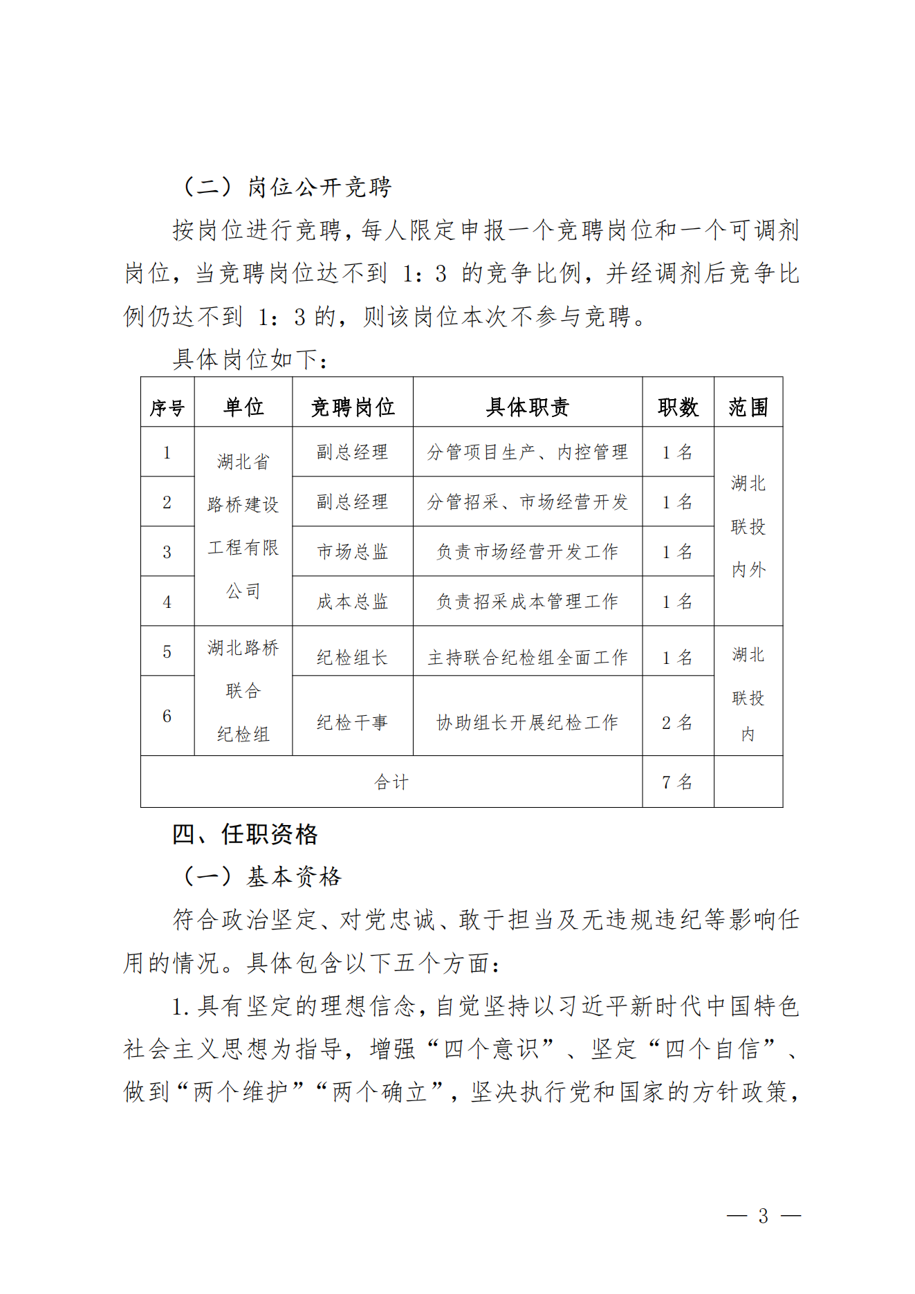 人才強(qiáng)企丨湖北省路橋集團(tuán)有限公司下屬橋隧公司經(jīng)營層團(tuán)隊(duì)組閣競聘考察對象的公告