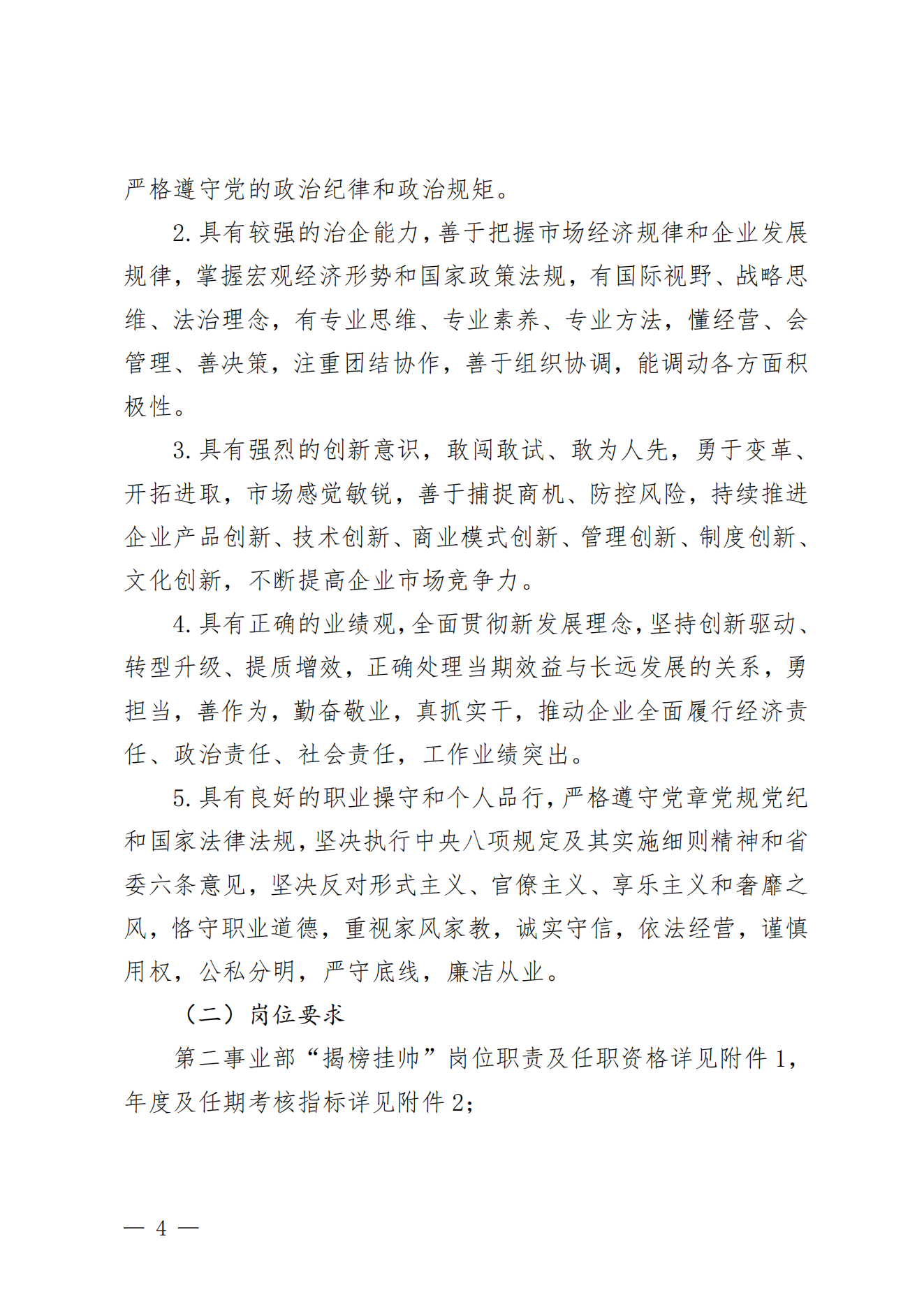 關(guān)于開展第二事業(yè)部“揭榜掛帥” 及部分崗位公開競聘的通知