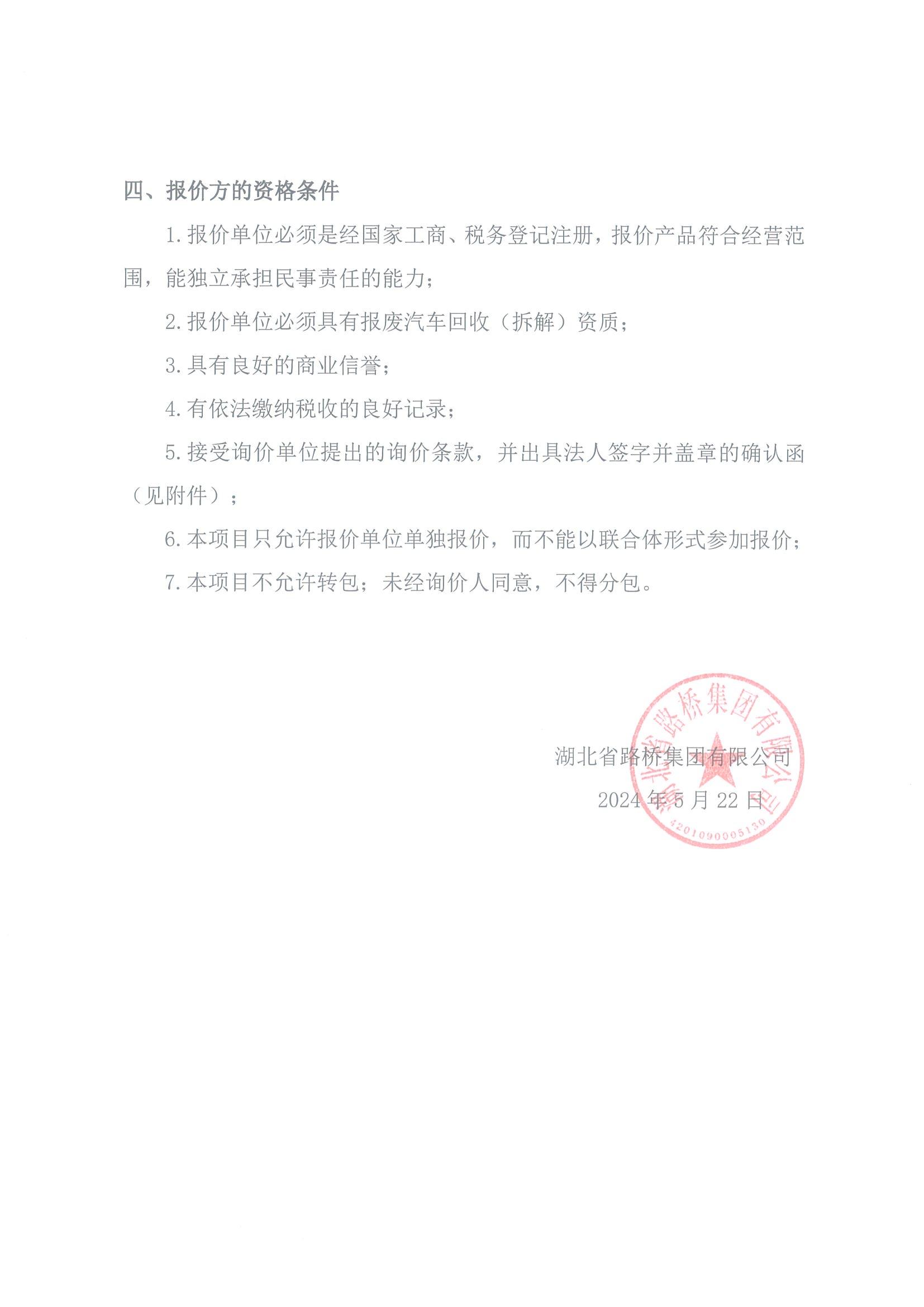 湖北省路橋集團(tuán)有限公司報廢車輛處置詢比采購(第二次)公告